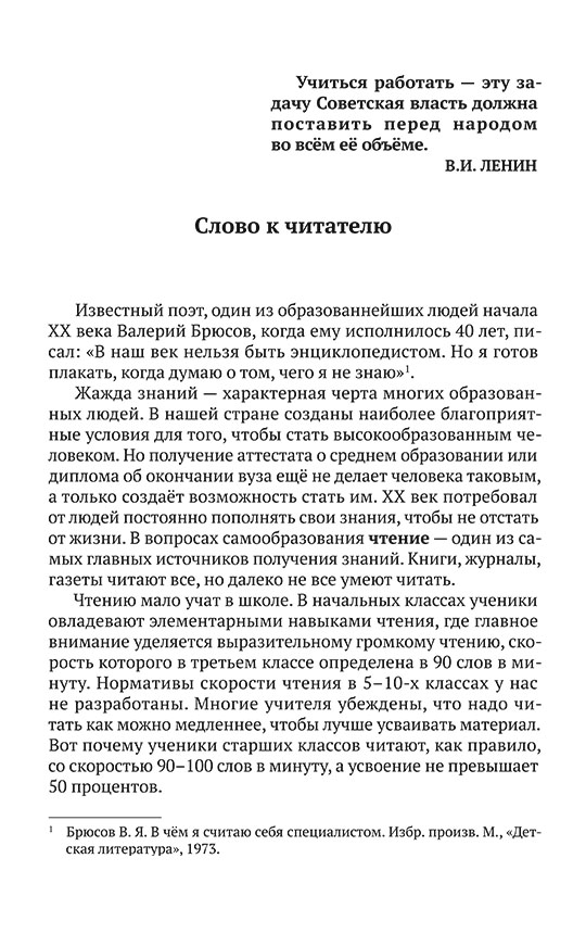 Как ориентироваться в растущих потоках текстов, когда времени на чтение становится всё меньше? Как читать быстрее и при этом понимать больше? За счёт каких механизмов мозг способен усваивать текст без внутреннего проговаривания? Книга посвящена проблеме чтения в условиях информационной перегрузки и предлагает системный подход к её решению - динамическое чтение как качественно иной способ восприятия текста. Авторы раскрывают физиологические и психологические основы чтения, объясняют, какие внутренние механизмы замедляют работу с книгой и как их можно перестроить. Читатель познакомится с принципами осмысленной работы с книгой, которые помогают читать целыми смысловыми блоками, быстрее находить главное и лучше запоминать материал. Книга рекомендуется студентам, преподавателям, специалистам интеллектуальных профессий и всем, кто работает с большими объёмами информации и занимается самообразованием.