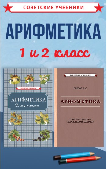Комплект включает классические советские учебники по арифметике для 1-го и 2-го класса. В учебнике для 1-го класса ребёнок знакомится с числами первого десятка, учится выполнять сложение, вычитание, умножение и деление. Вводятся меры длины, веса и объёма. Учебник для 2-го класса помогает перейти к более сложным задачам по математике: задания с двузначными числами, меры времени, чтение и запись сложных чисел. Оба издания содержат наглядный материал, выстроенный по принципу «от простого к сложному» и подходят для самостоятельных занятий, домашнего обучения и подготовки к школе.