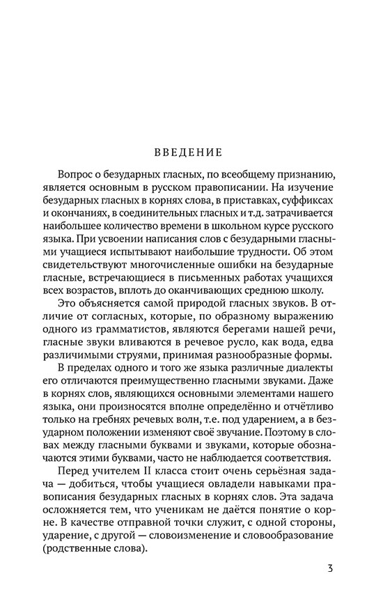 Около 50% учеников начальных классов делают ошибки в правописании безударных гласных в корне. Этот раздел — один из самых сложных в русском языке — продолжает вызывать у них трудности вплоть до окончания школы. Основная причина — плохо усвоенные во 2 классе базовые правила проверки и запоминания слов с безударными гласными в корне. Методика преподавания этих правил нацелена на зазубривание, а не на понимание темы. В этом издании собраны лучшие методические рекомендации для проведения полезных и интересных уроков правописания безударных гласных: описан порядок изучения правил, способы проверки знаний, а также несколько подробных планов занятий — от примеров учебных текстов до проведения работы над ошибками. Пособие будет полезным для учителей начальных классов, а также для родителей, которые занимаются с детьми самостоятельно.