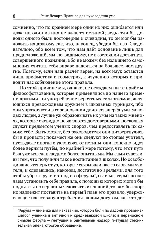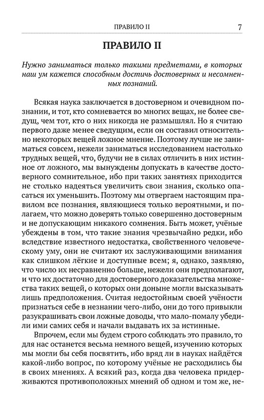 Как научиться мыслить ясно в мире, полном хаоса? Что общего между решением математической задачи и поиском жизненной истины? Возможно ли выстроить универсальный метод познания, который не подведёт ни в науке, ни в повседневной жизни? И что делает ум по-настоящему свободным? Рене Декарт предлагает стройную систему умственных упражнений. Он учит дробить сложные проблемы на простые элементы, выстраивать логические цепочки и находить фундамент, на котором можно возводить здание науки. Его метод — живая практика от анализа математических задач до осмысления природы человеческого сознания. Книга сохранила незавершённость авторской рукописи, что лишь усиливает её притяжение: читатель становится соучастником мыслительного процесса гения. Издание рекомендуется философам, учёным, любителям критического мышления и всем, кто ищет систему координат для навигации в мире идей.