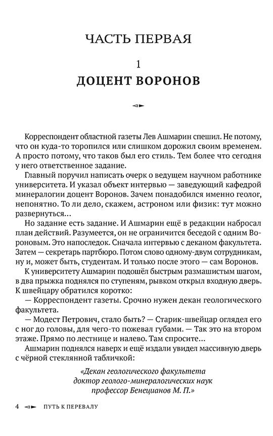Роман «Путь к перевалу» рассказывает о студентах геологического факультета. Им придётся учиться не только науке, но и умению отстаивать своё мнение, разбираться в людях, отвечать за поступки. На фоне споров о предмете и будущем профессии возникают дружба, первые чувства, конфликты и нравственные испытания. Особое место занимает образ преподавателя-новатора, чьи идеи пугают одних и вдохновляют других.