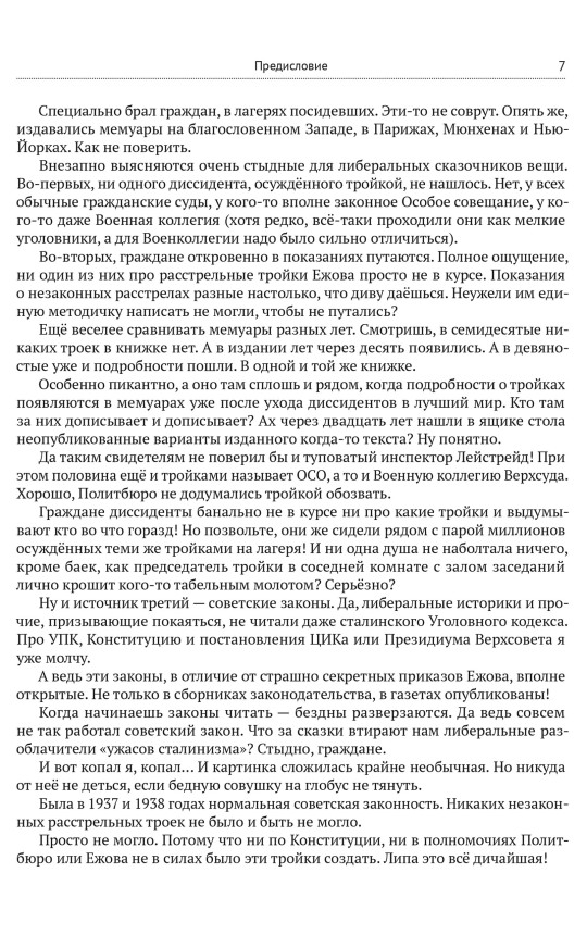 Кому было выгодно превратить советскую историю в сборник леденящих душу легенд? Какие органы действительно имели полномочия выносить приговоры? Как выглядели настоящие судебные процессы в СССР в 1930-е годы? Это историко-публицистическое расследование доказывает, что масштаб «Большого террора» нуждается в серьёзной переоценке. Автор анализирует деятельность «расстрельных троек НКВД», ставя под сомнение их реальное существование в том виде, в котором их описывают официальные источники и мемуары диссидентов. Он опирается на детальное изучение архивных материалов, мемуаров и законодательства. В книге разбираются юридические несоответствия в протоколах, противоречия в свидетельствах, фальсификации документов и политическая подоплёка создания мифа о сталинских репрессиях. Издание рекомендуется историкам, политологам, скептикам и всем, кто хочет понять, почему архивные документы бывают обманчивы и как отличить правду от лживых сказок о прошлом.
