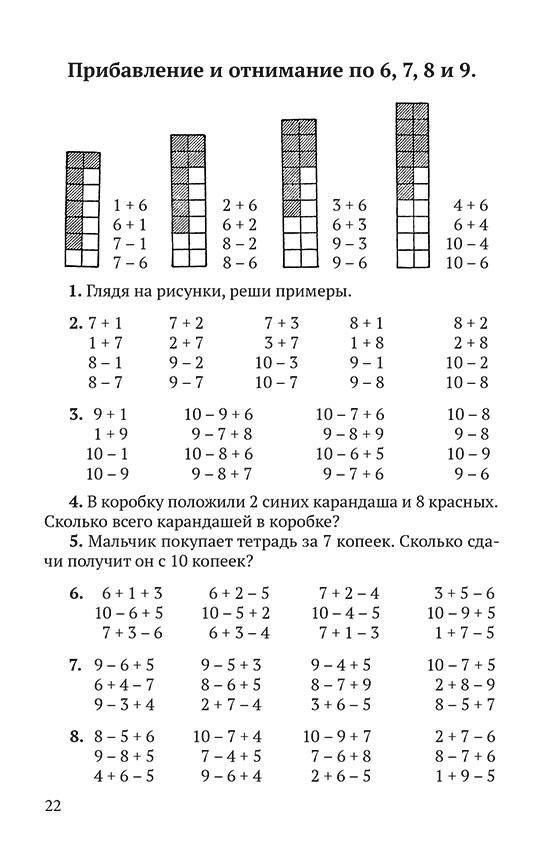 Перед вами понятный и структурированный советский учебник по математике за 1 класс в современном издании. В нём собраны простые правила для быстрого обучения счёту, задания на сложение и вычитание, доступные для учеников младшей школы примеры по математике. Пока дети не научились читать, они узнают текст учебника по математике со слов педагога или родителя. Чтобы занятия были более эффективны, особенно с первоклассниками, для учителя начальных классов обязательно нужен дидактический материал. Следует иметь хотя бы разрезные цифры и знаки действий, квадратики и палочки (или спички без головок). На первых порах, изучая состав чисел и счет до 10, дети учатся только узнавать цифры. В это время применяется разрезной дидактический материал. Письмо цифр начинается позднее и протекает медленнее. Учиться писать цифры детям следует по одной. Сдвоенные задания допущены в сталинских учебниках арифметики ради экономии места и не должны нарушать указанного методического требования. Относящиеся к рисункам задания всегда помещаются в книге под рисунком. Данная книга даёт систему начальных знаний по математике для первого года обучения, здесь есть все вопросы и ответы на них, возникающие у первоклашек.