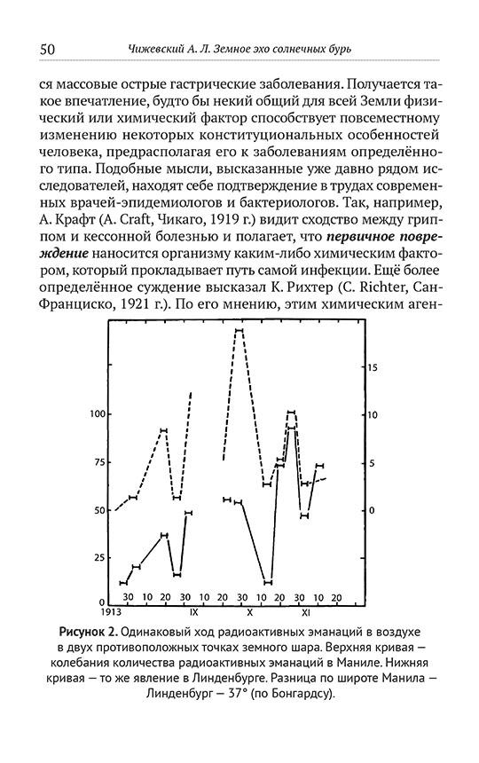 Почему колебания солнечной активности отражаются на здоровье и поведении людей? Как солнечные бури связаны с историческими событиями? Каким образом они могут вызывать эпидемии и извержения вулканов? Александр Чижевский на основе многолетних наблюдений и научных исследований показывает широкий спектр влияния Солнца на природные процессы Земли — от климатических и геофизических до биологических. Особое внимание уделено медицинской географии и эпидемиологии, где наглядно проявляются ритмы космоса. Издание соединяет научную строгость с живой, увлекательной подачей материала, помогая увидеть неожиданные закономерности. Книга рекомендуется исследователям природы и общества, тем, кто интересуется историей, астрофизикой, биологией, а также скрытыми влияниями Солнца на жизнь Земли.